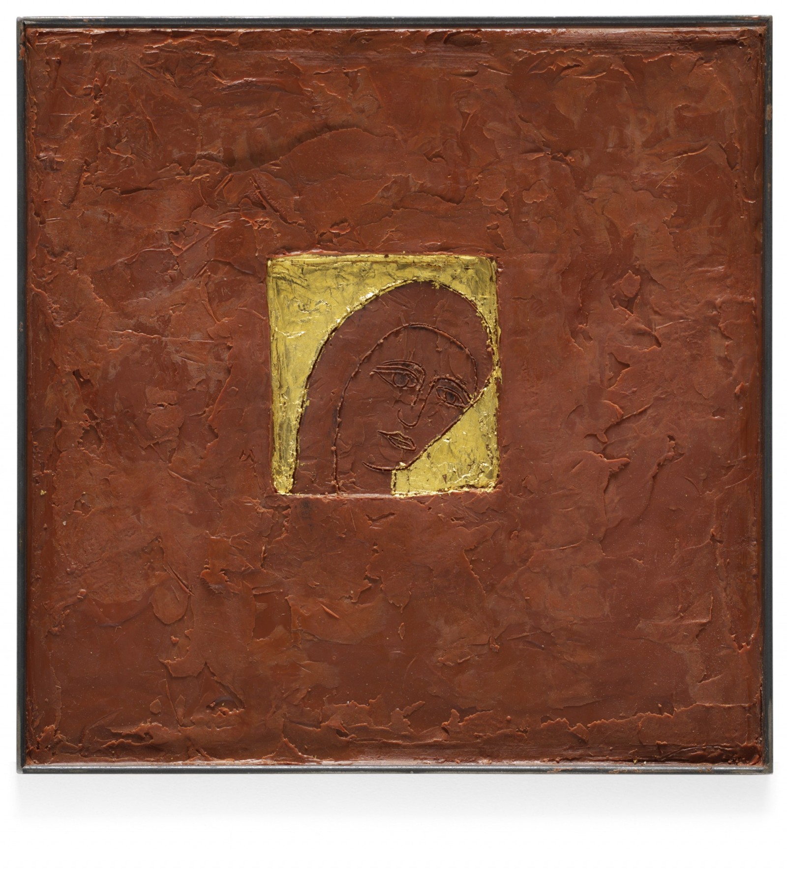 Bienenwachs, Eitempera, Blattgold und Pigmente auf Holz oder Metall