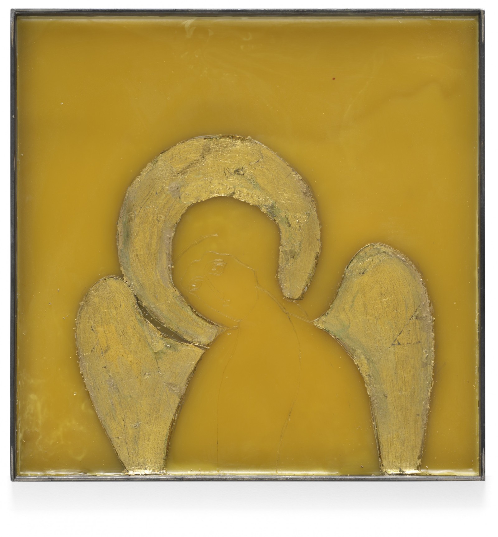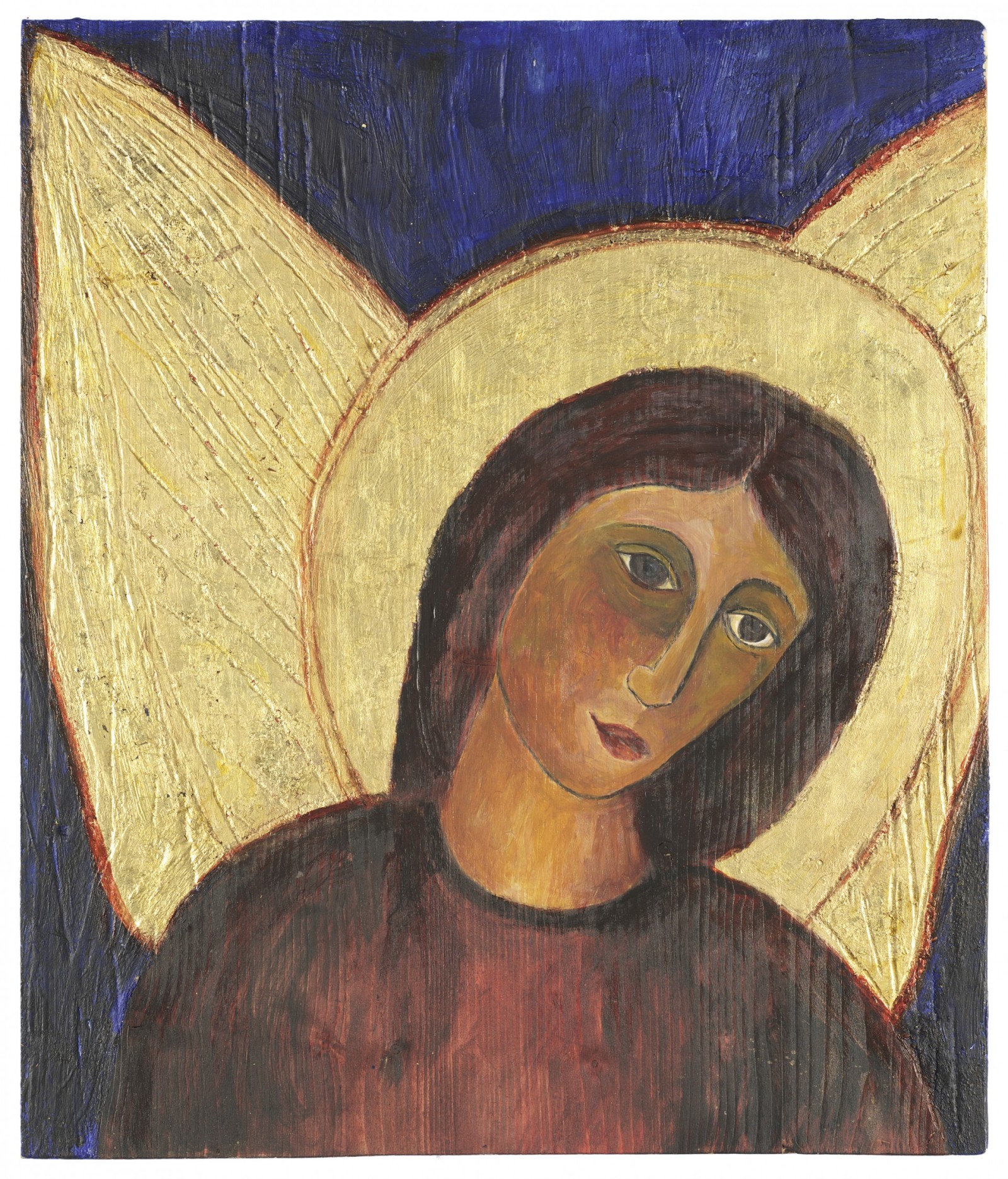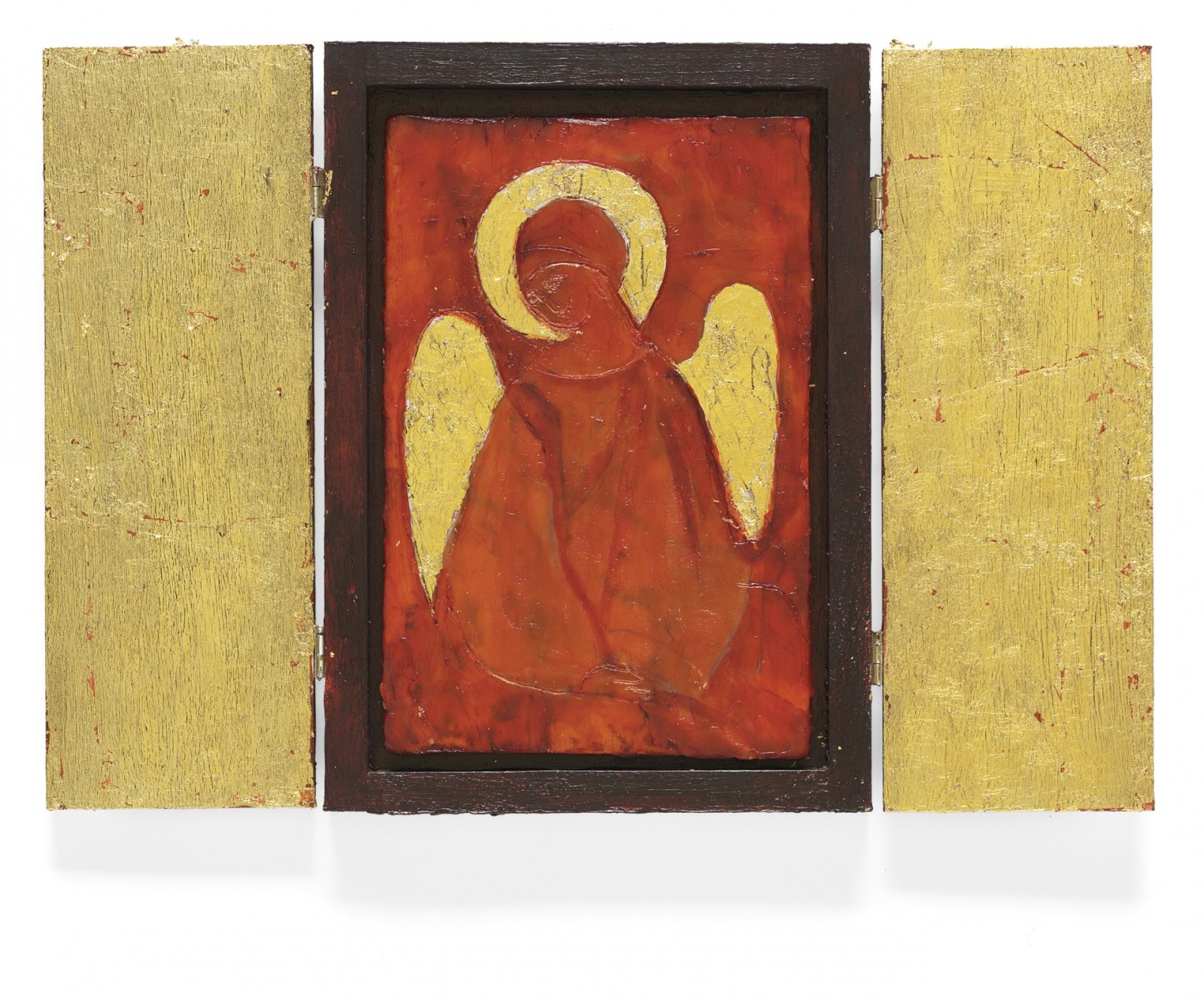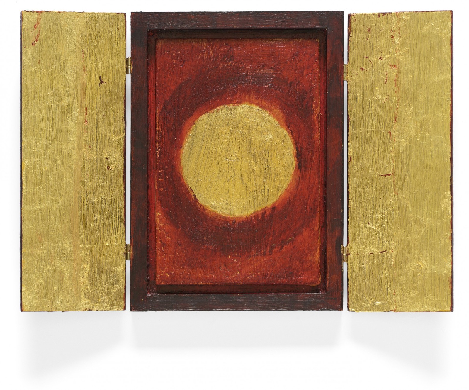 Bienenwachs, Eitempera, Blattgold und Pigmente auf Holz oder Metall