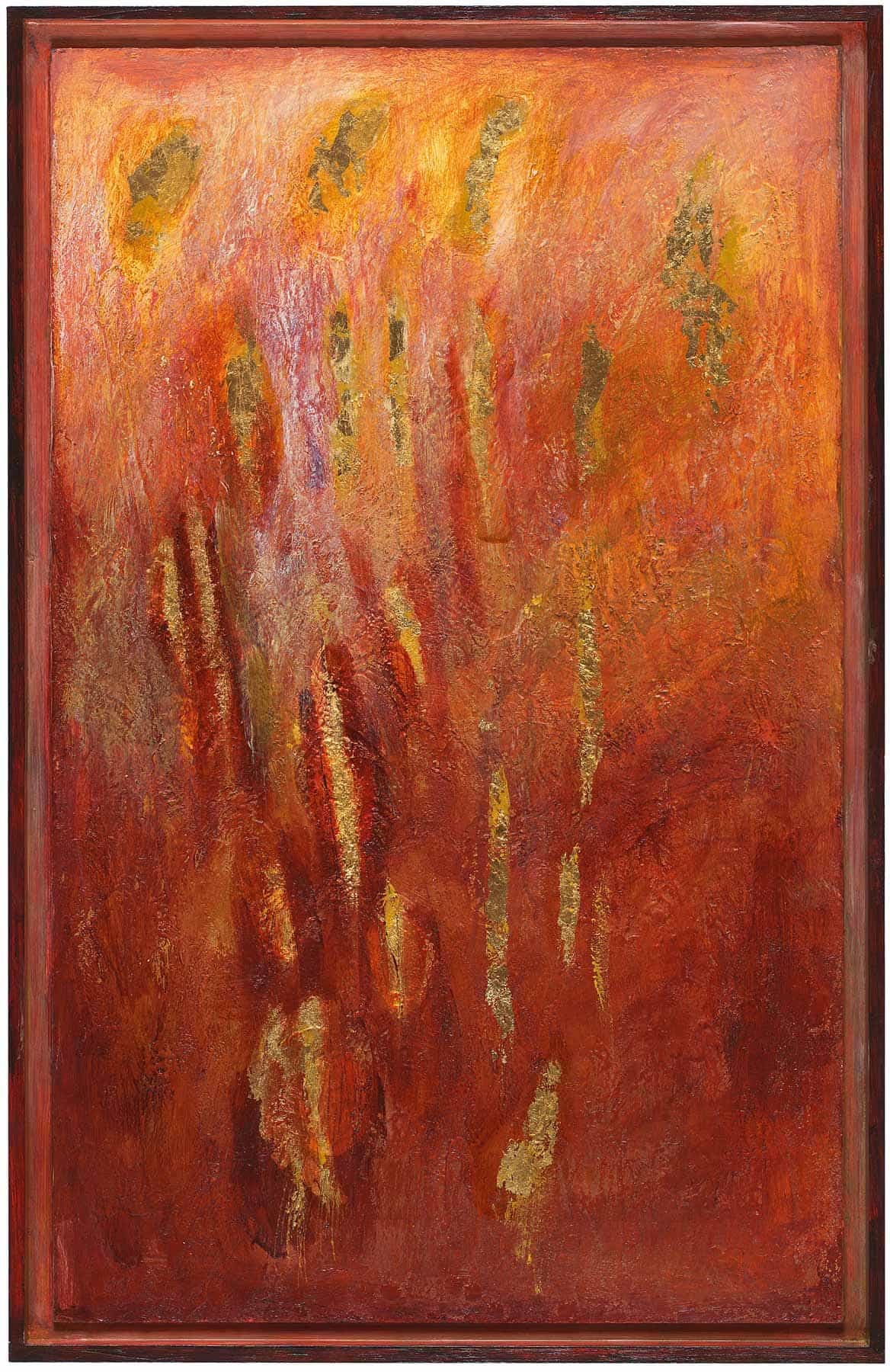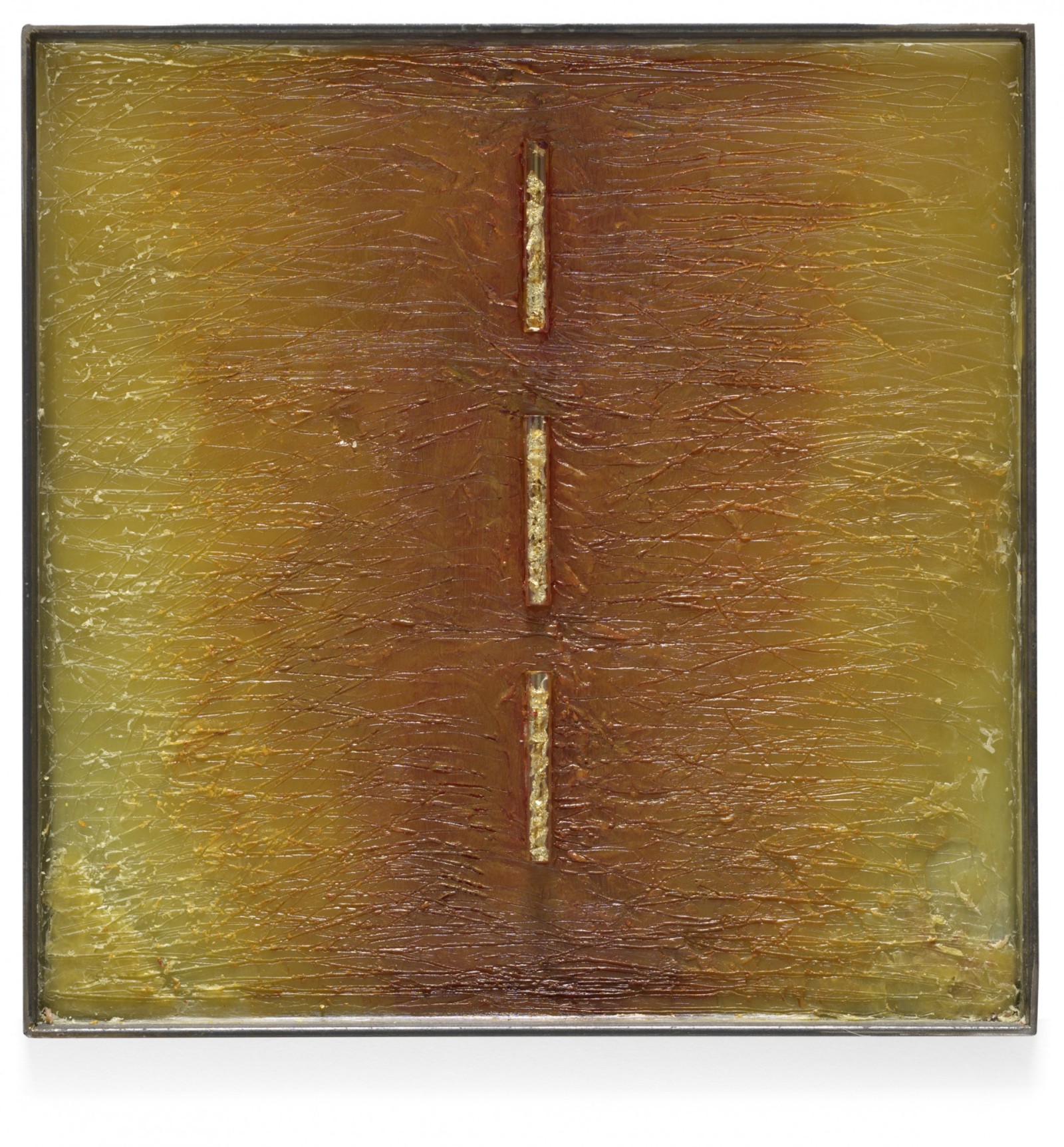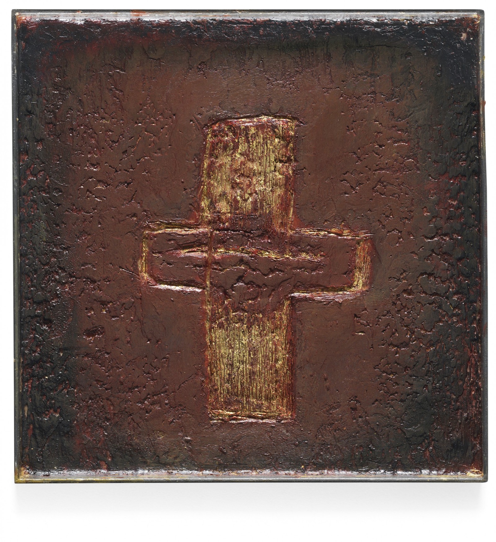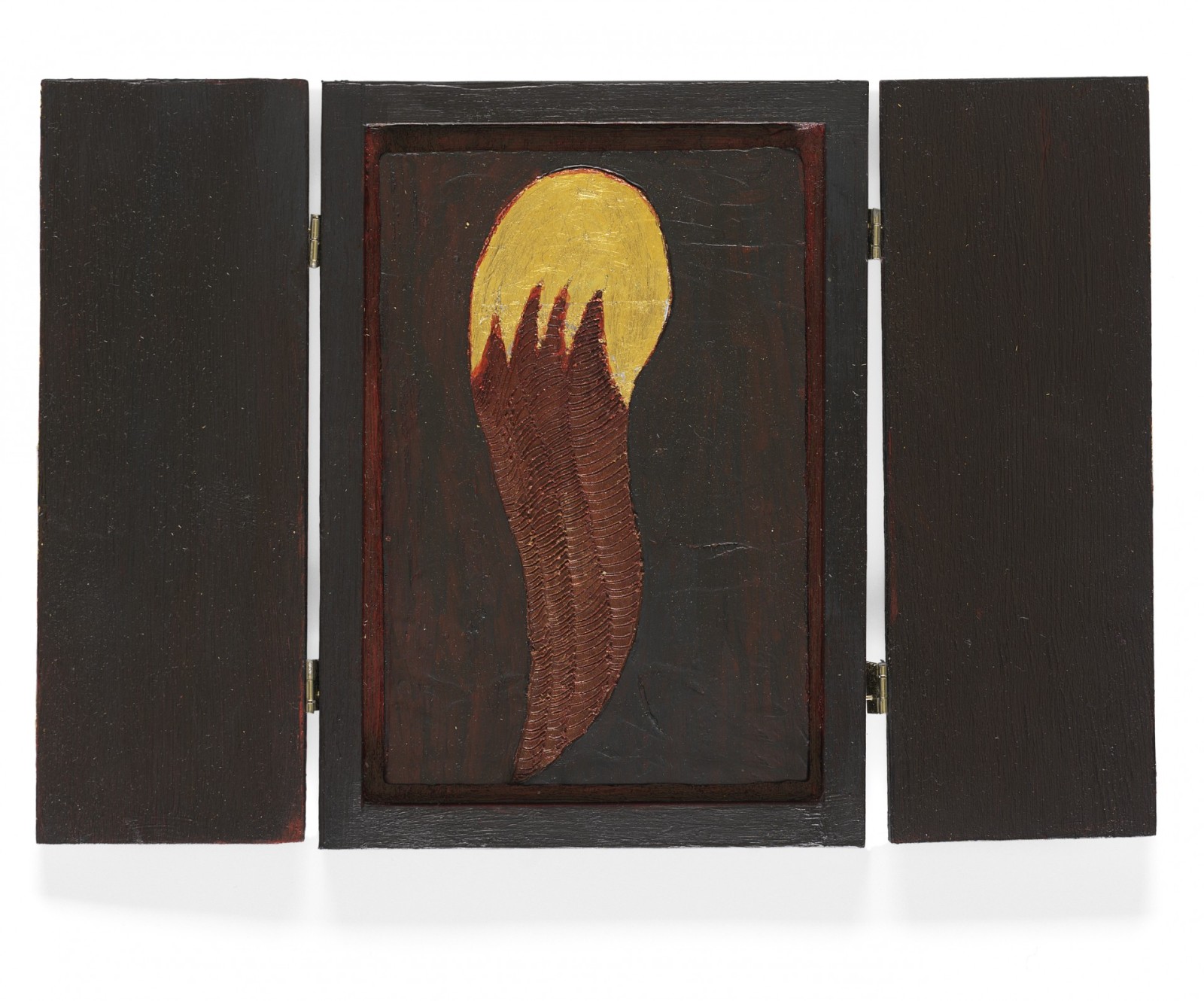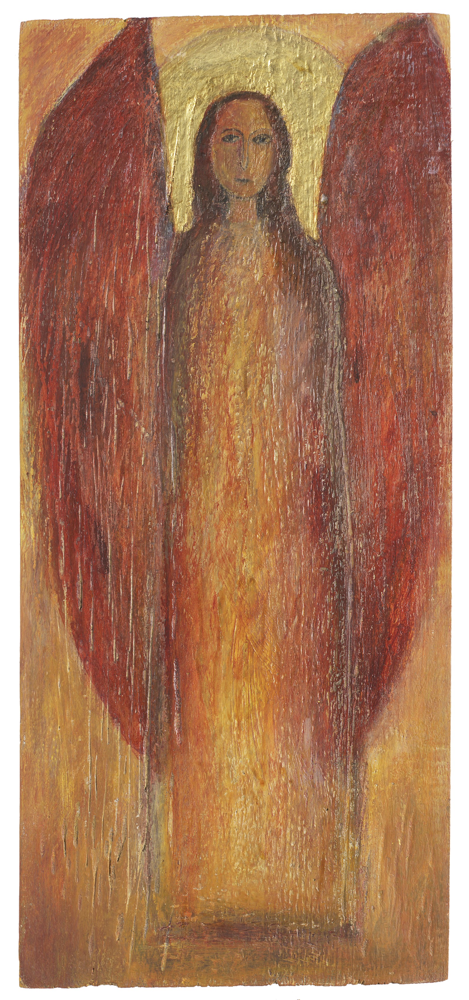 Bienenwachs, Eitempera, Blattgold und Pigmente auf Holz oder Metall